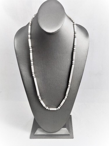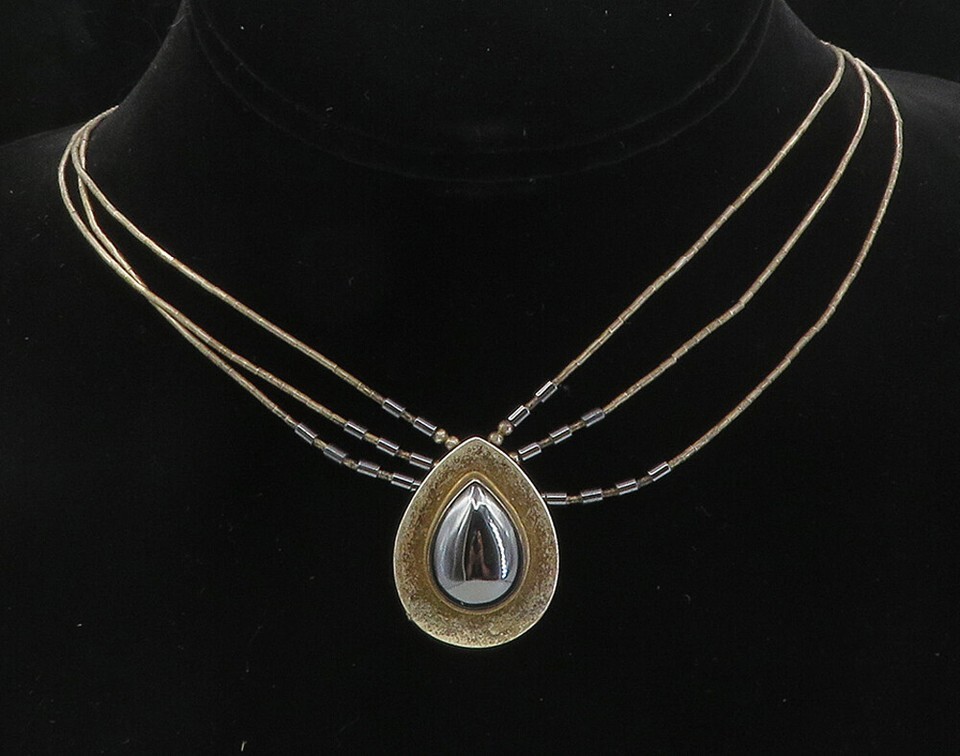 NAVAJO 925 Sterling Silver Vintage Tear Drop Hematite Chain Necklace NE1618