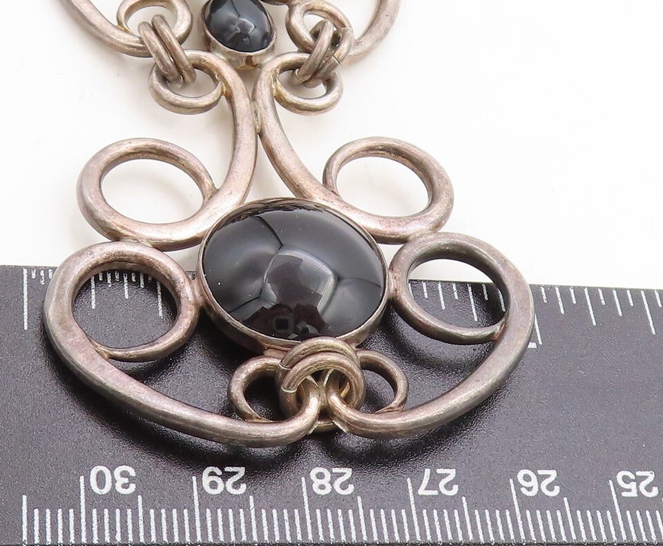 ISRAEL 925 Silver Vintage Black Onyx Dark Tone Swirl Chain Necklace NE1416