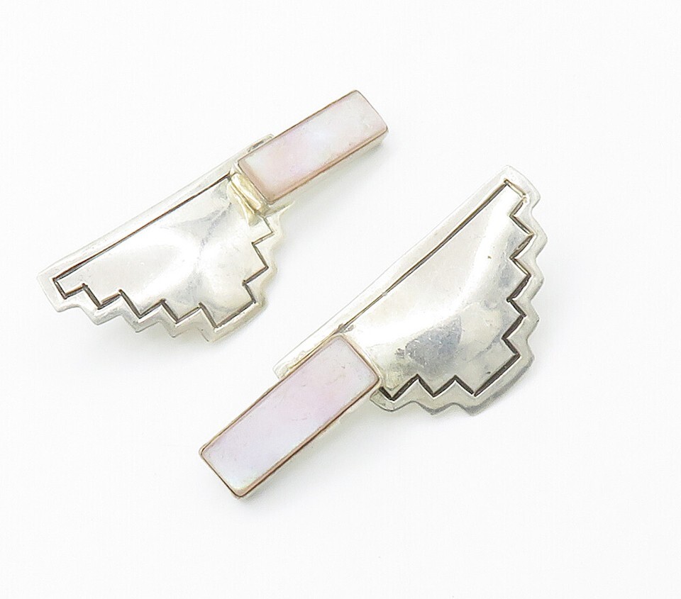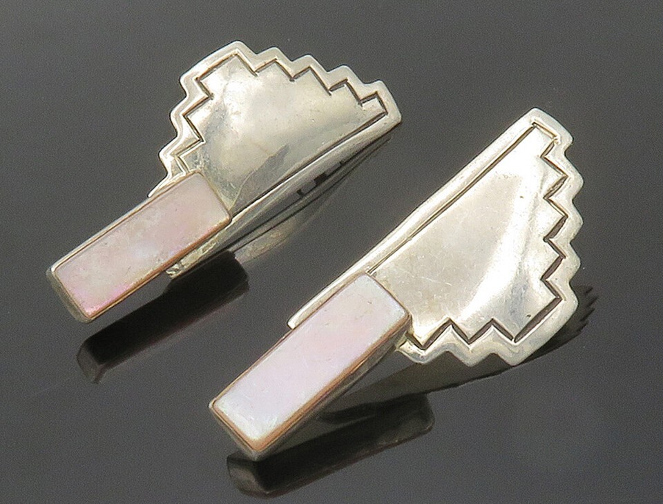 SOUTHWESTERN 925 Sterling Silver Vintage Mother Of Pearl Drop Earrings EG7790