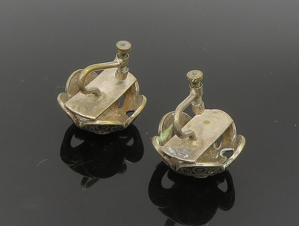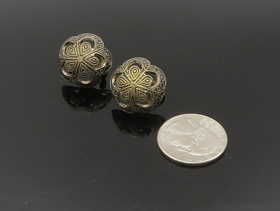 EUROPEAN 925 Silver Vintage Floral Motif Cut Out Non Pierce Earrings EG11614