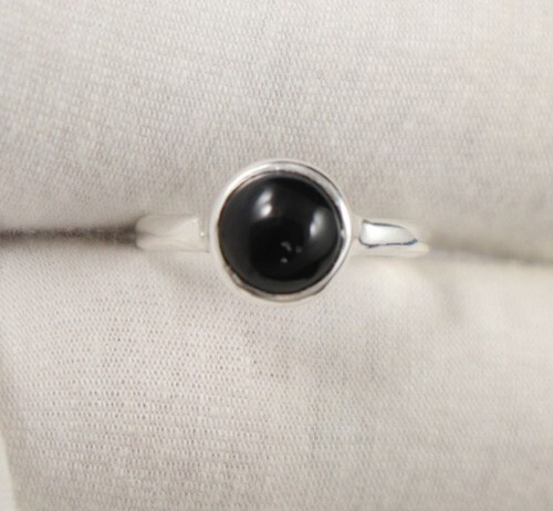 925 Sterling Silver Cabochon Cut Black Onyx Oval Solitaire Ring Sz 4.5 RG2971
