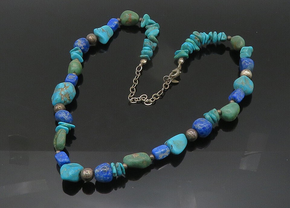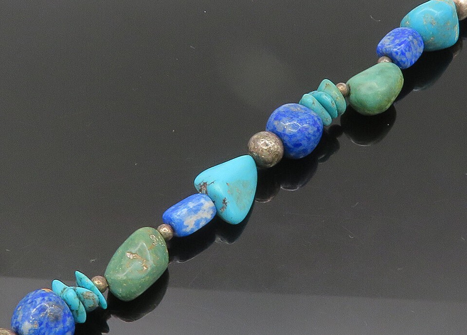 SOUTHWESTERN 925 Silver Vintage Turquoise & Lapis Lazuli Necklace NE3546