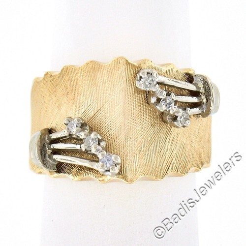 Authenticity Guarantee 14K GOLD Vintage Victorian Linear Textured Hexagon So...