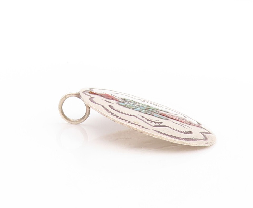 925 Sterling Silver Vintage Pendant NAVAJO ZUNI Crushed Turquoise Bird PT24142