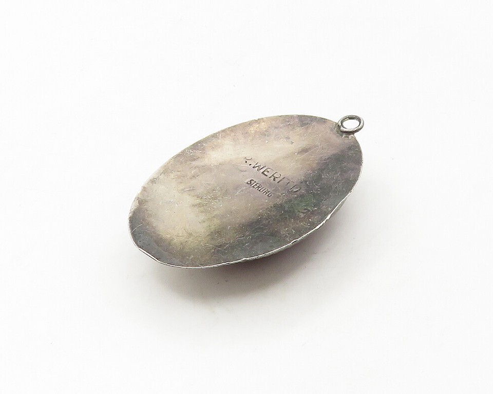 RICK WERITO NAVAJO 925 Silver Vintage Cabochon Red Jasper Pendant PT13811