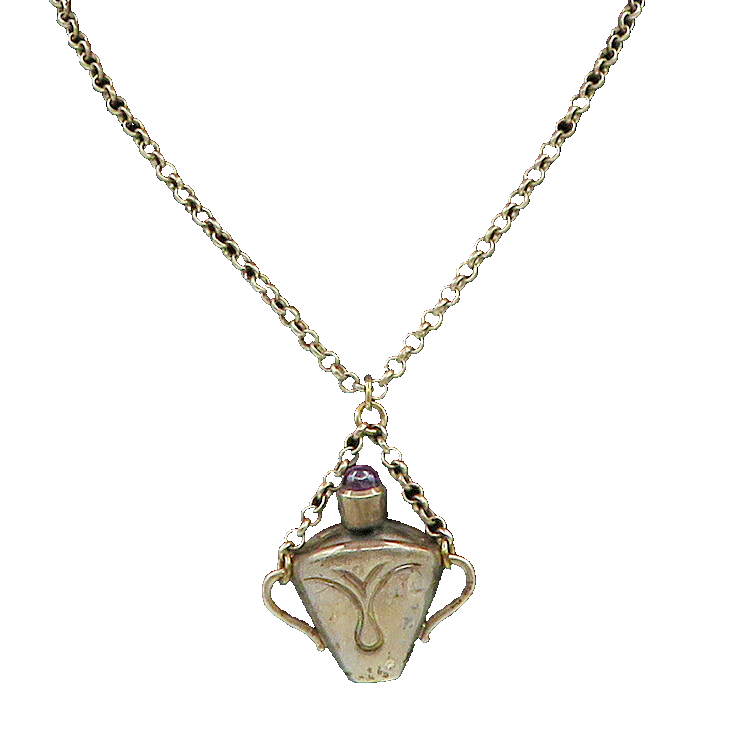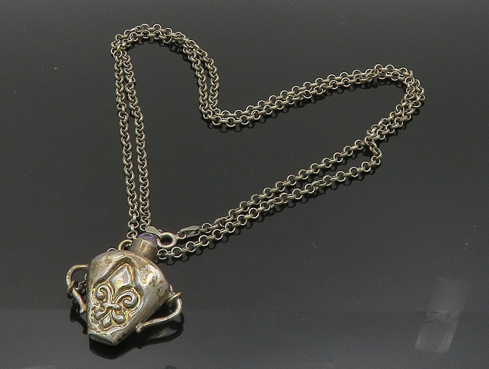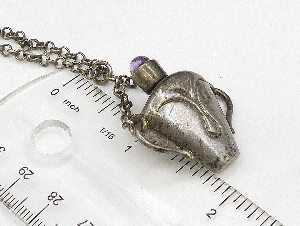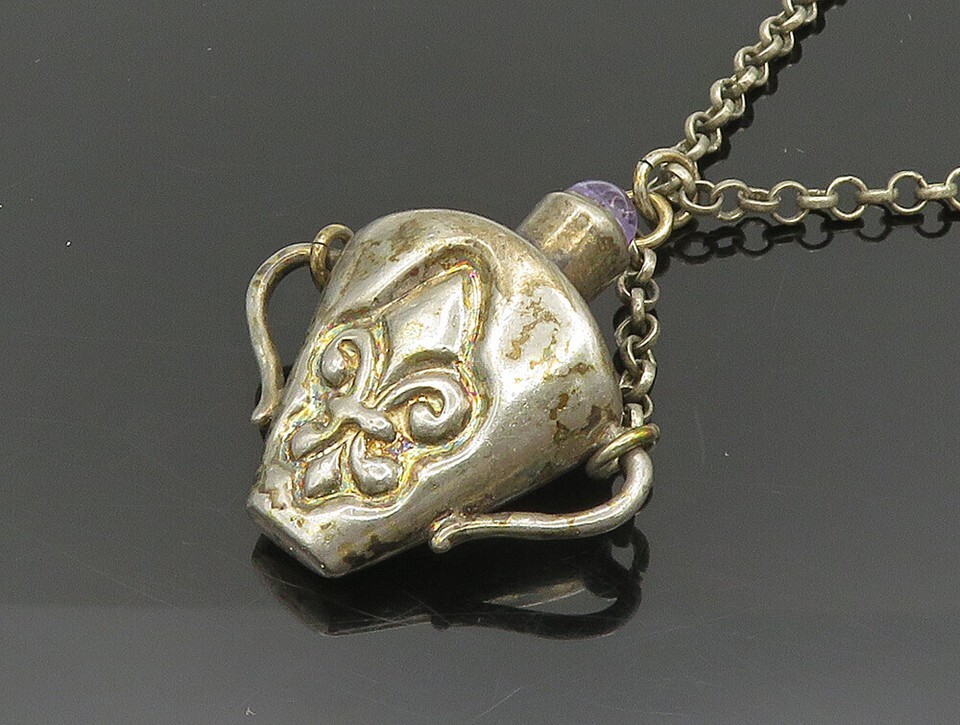 925 Silver Vintage Antique Fleur De Lis Amethyst Tea Cup Necklace NE3835