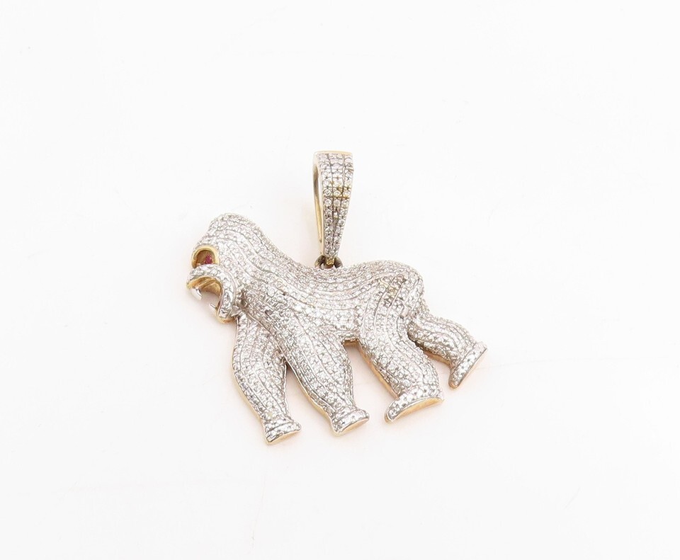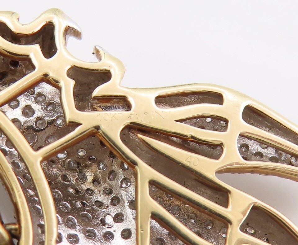 Authenticity Guarantee 10K GOLD Vintage Pendant Real Diamonds & Ruby Eyed An...