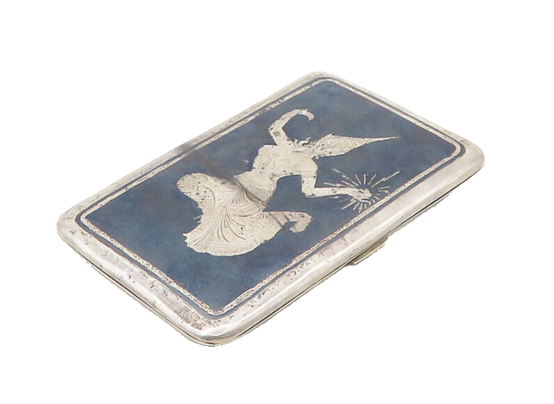 SIAM 925 Silver Vintage Antique Niello Enamel Dancer Cigarette Case TR2506