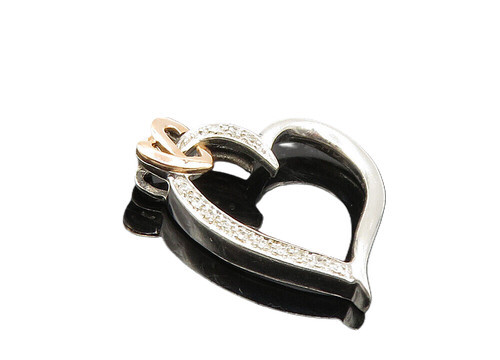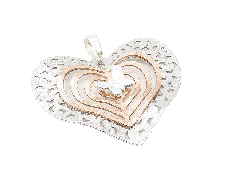 925 Sterling Silver Shiny Two Tone Butterfly Love Heart Drop Pendant PT9278