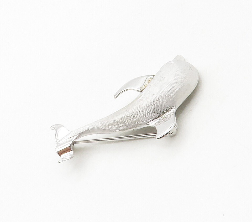 BEAU 925 Sterling Silver Vintage Shiny Matte Dolphin Motif Brooch Pin BP6507