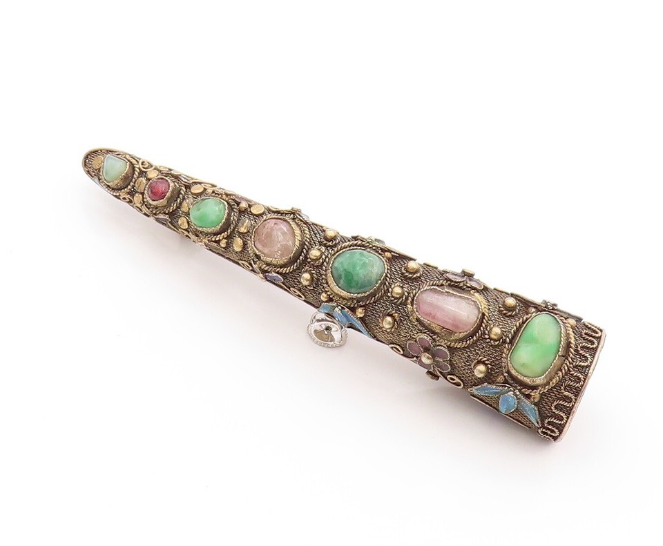 925 Sterling Silver Vintage Brooch CHINESE EXPORT Gold Plated Gemstones BP11531