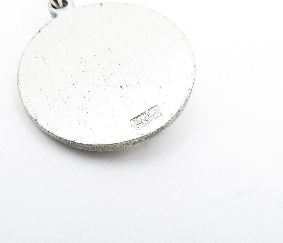 925 Sterling Silver Vintage Saint Stephen Stamped Round Drop Pendant PT4207