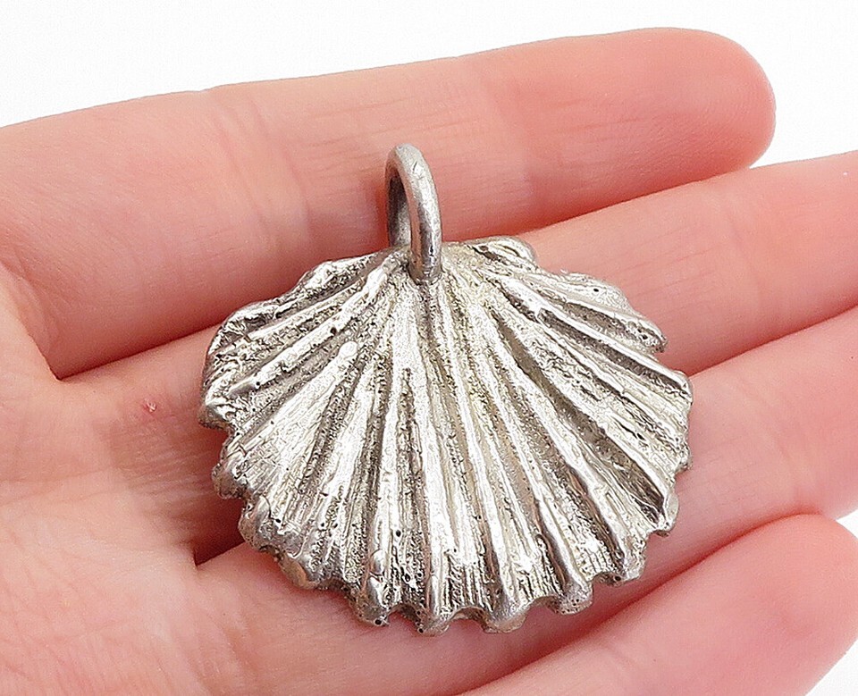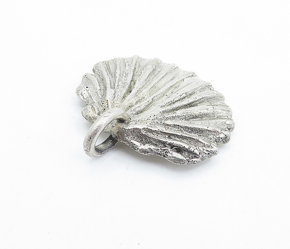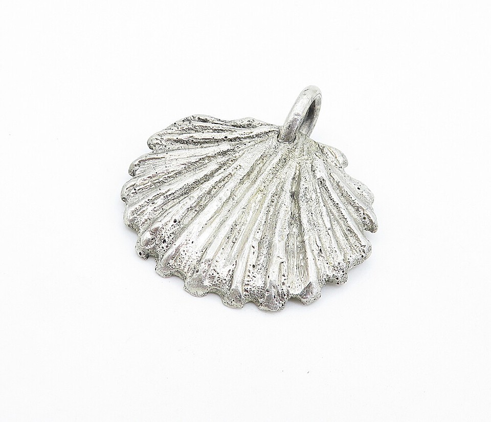 925 Sterling Silver Vintage Clam Shell Scalloped Design Pendant PT4235