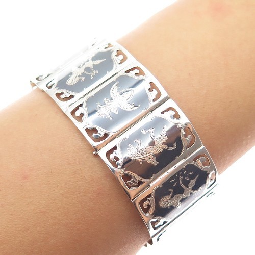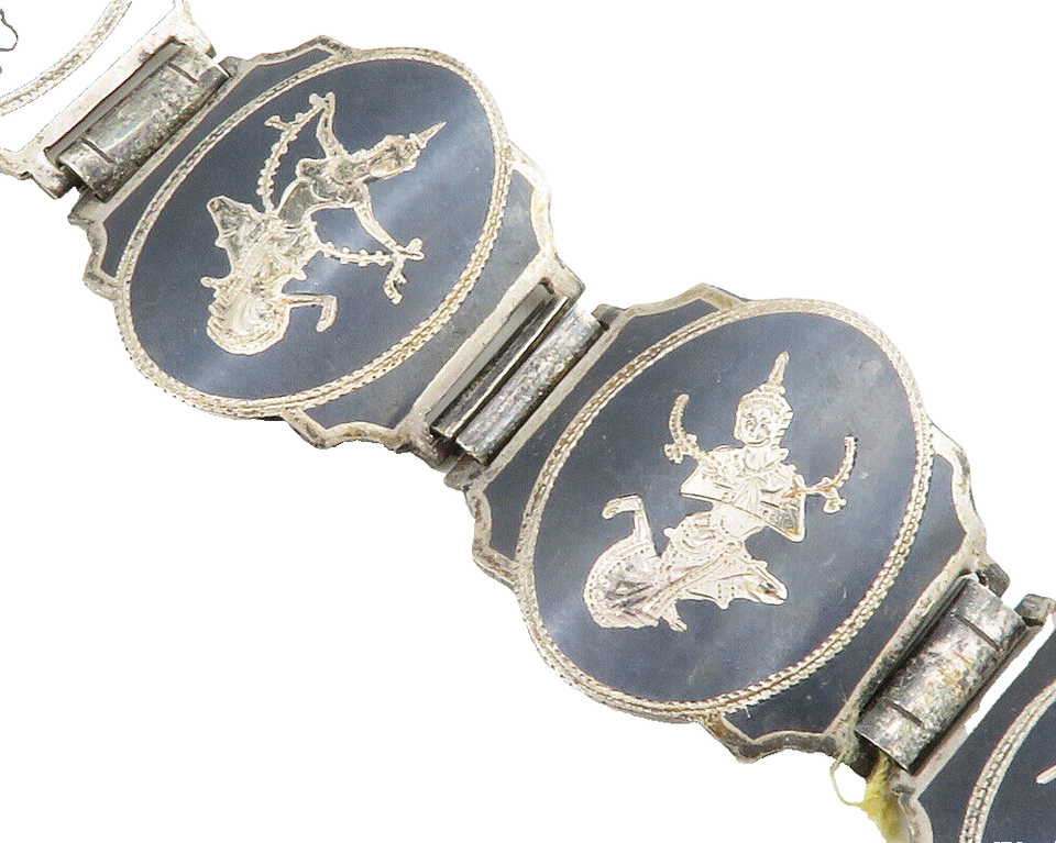 SIAM 925 Sterling Silver Vintage Niello Dancer Panel Chain Bracelet BT5135