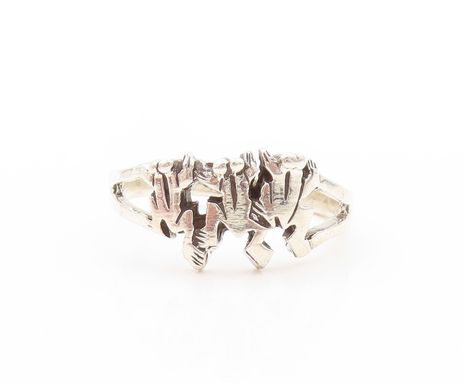925 Sterling Silver Vintage Ring Designer Jumping Frogs Cutout Sz 9 RG32865