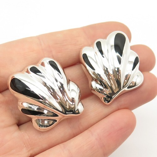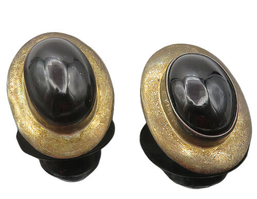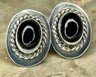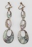 CB TAXCO MEXICO 925 Silver Vintage Onyx & Abalone Non Pierce Earrings EG4106