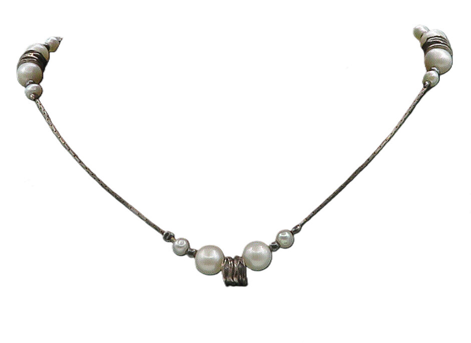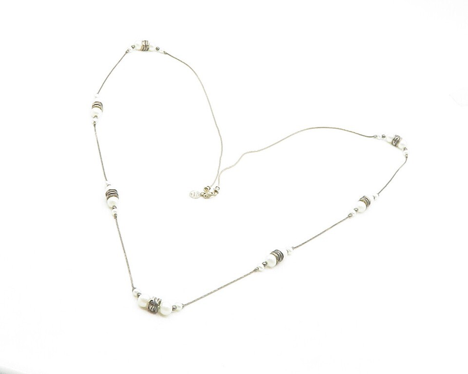 OR PAZ ISRAEL 925 Sterling Silver Vintage Pearls Thin Chain Necklace NE2273