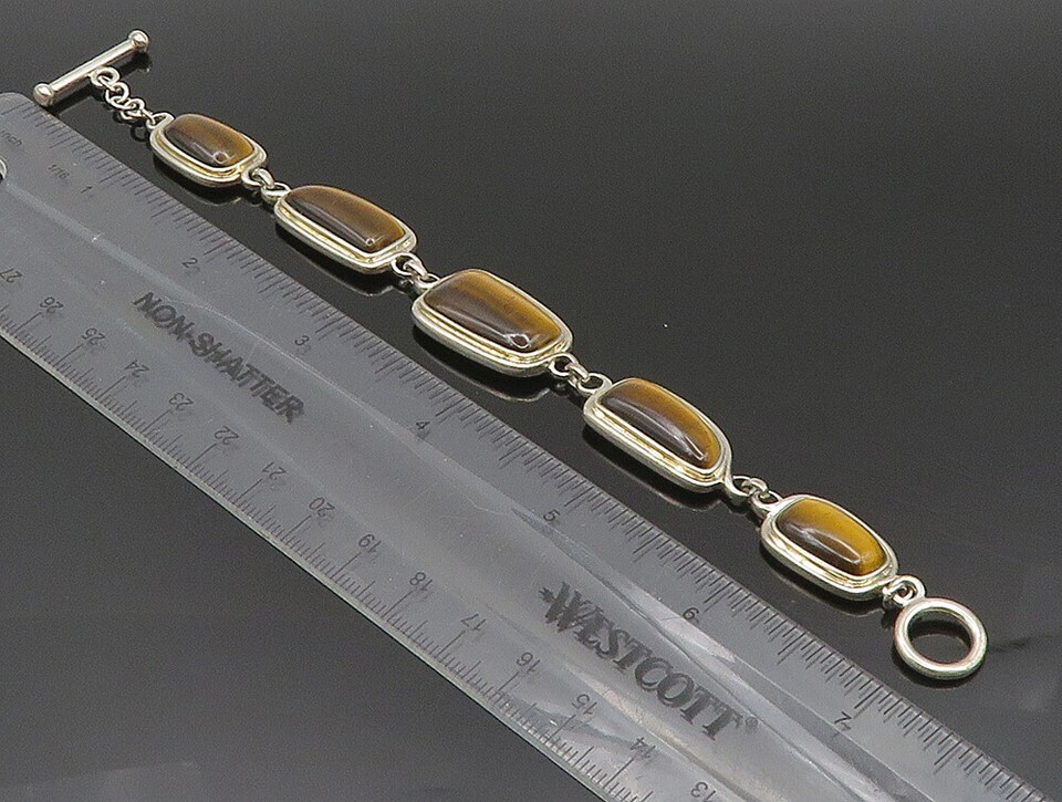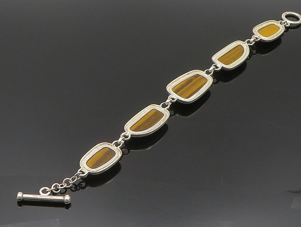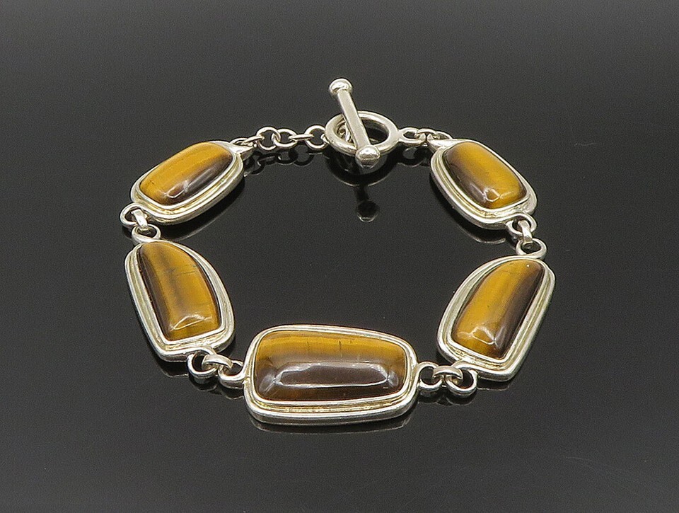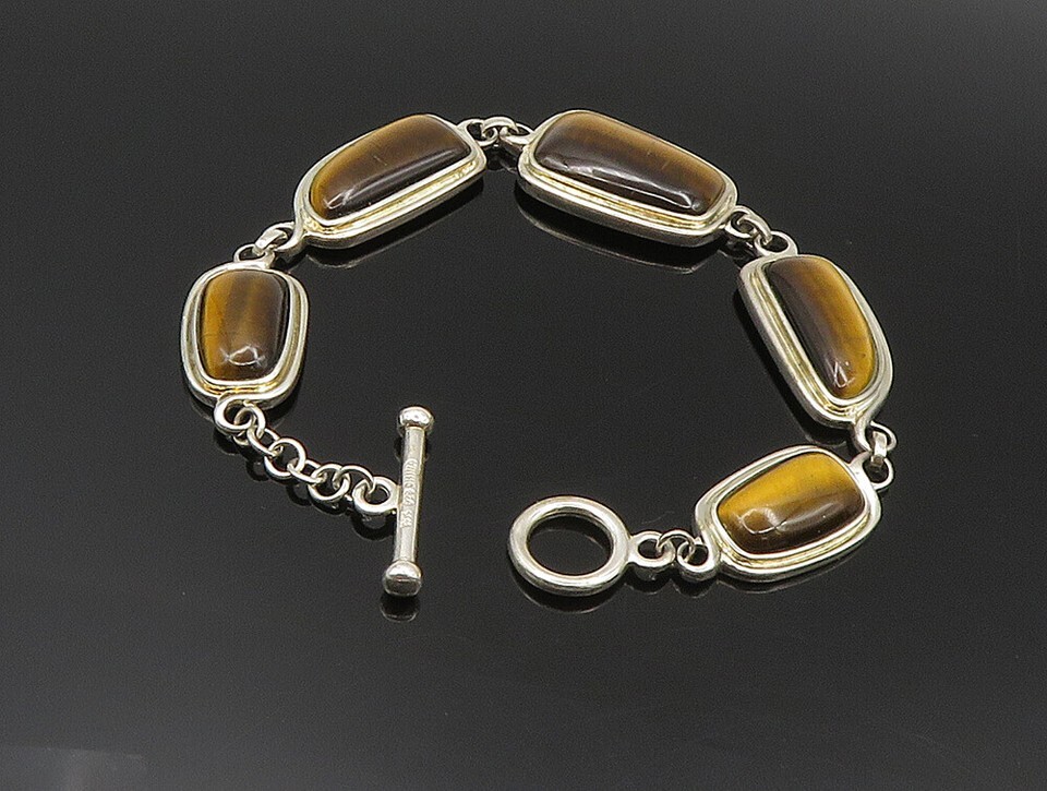 WHITNEY KELLY 925 Silver Vintage Unique Tiger's Eye Chain Bracelet BT9448