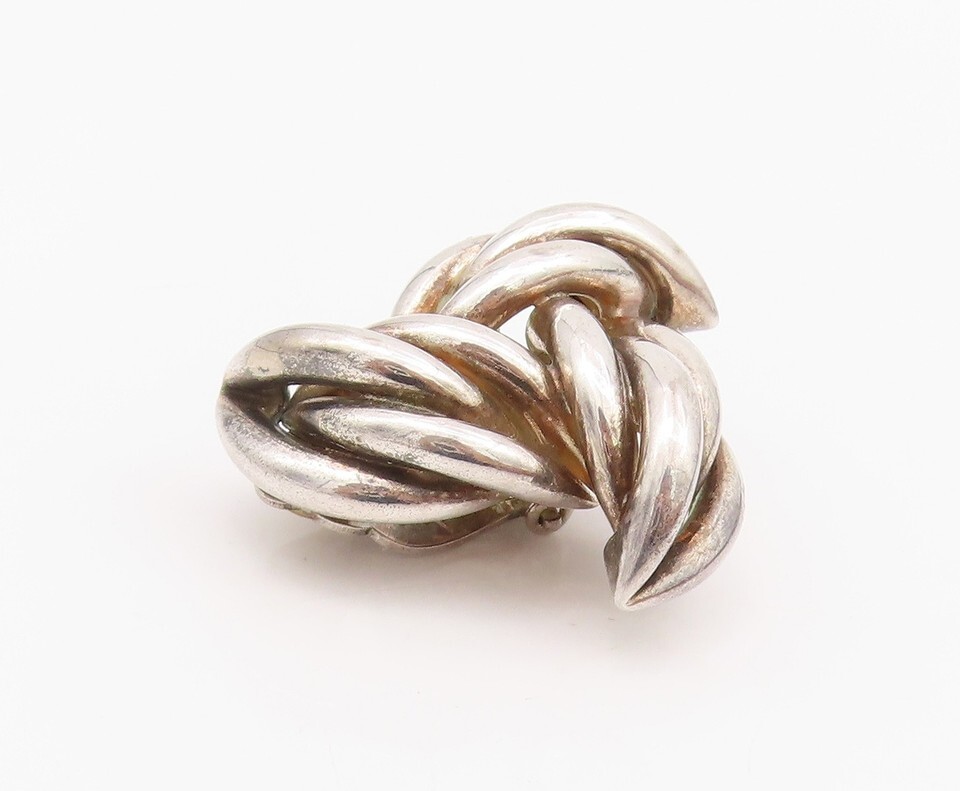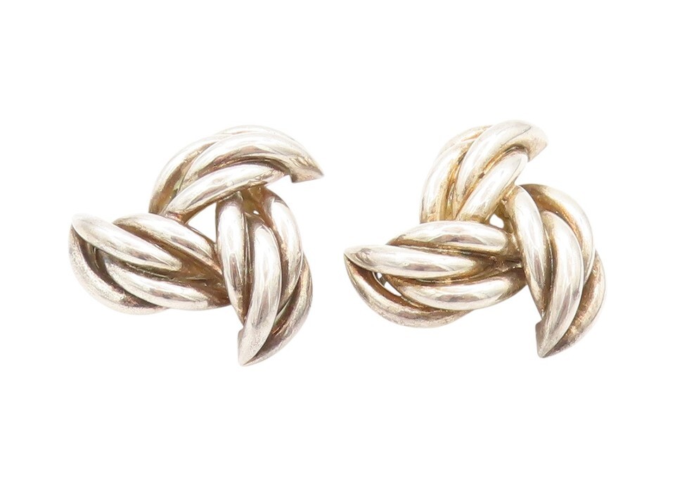 925 Sterling Silver Vintage Earrings GIVENCHY Love Knot Braided Clip On EG13628