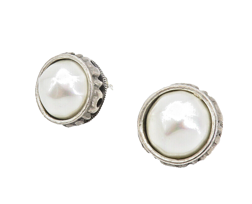 DESIGNER 925 Silver Plated Vintage Shiny Pearl Dome Drop Earrings EG2951
