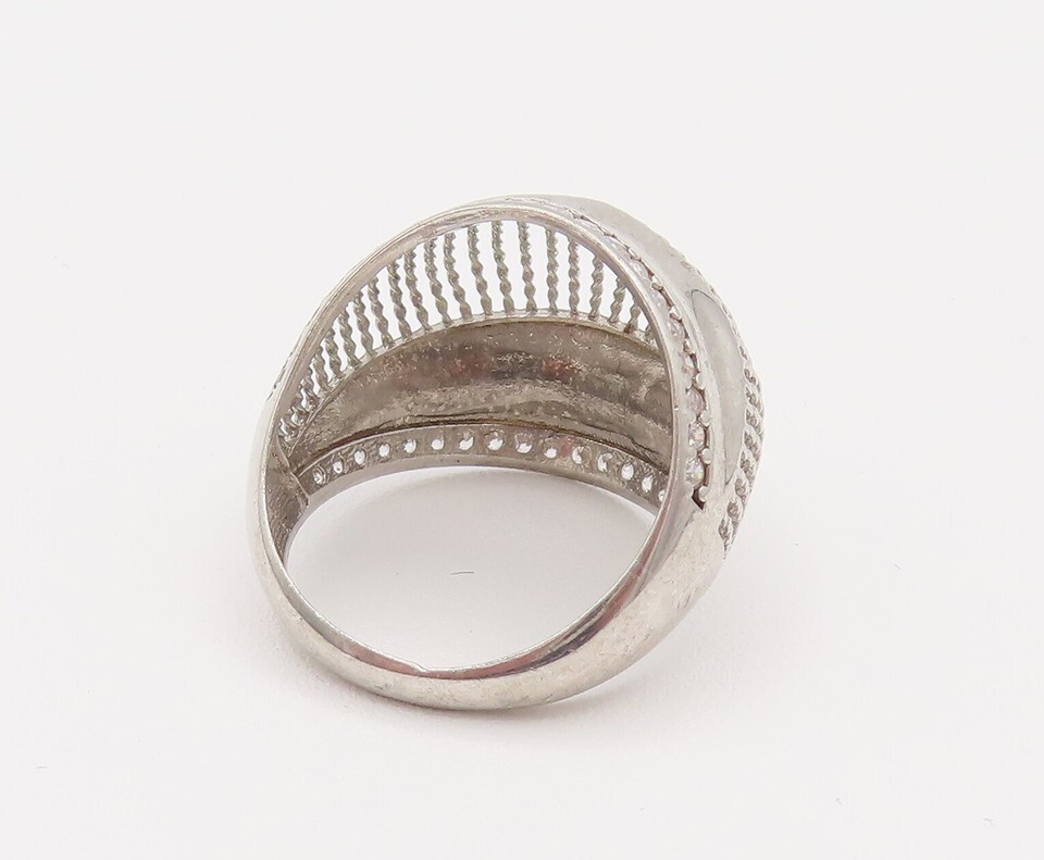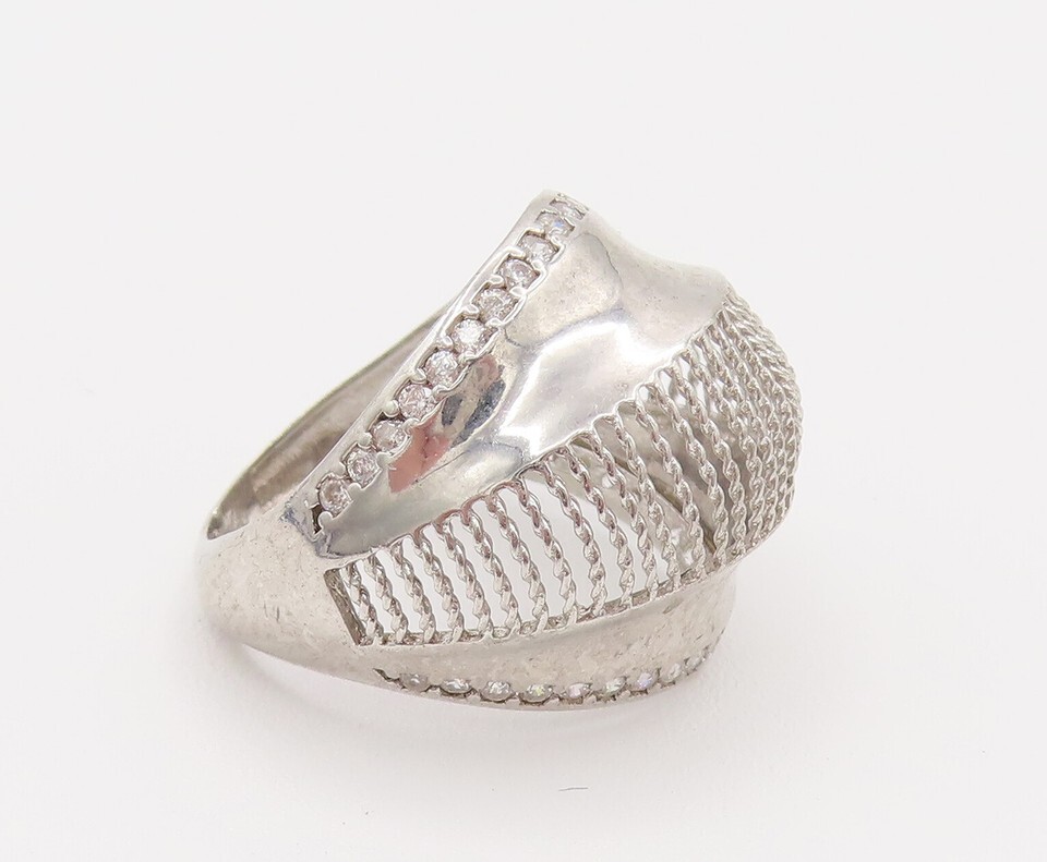 925 Silver Vintage Mesh & Cubic Zirconia Edge Dome Ring Sz 6.25 RG26186