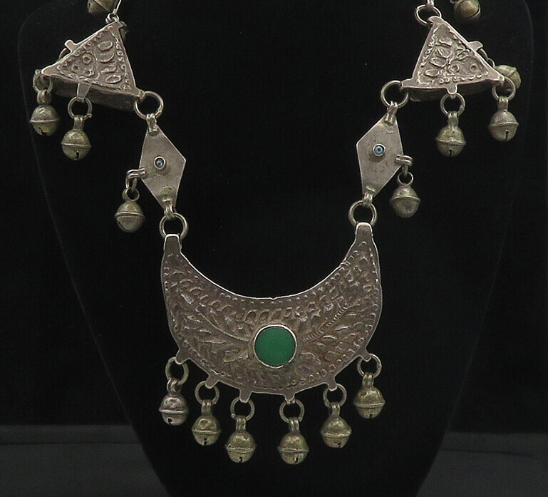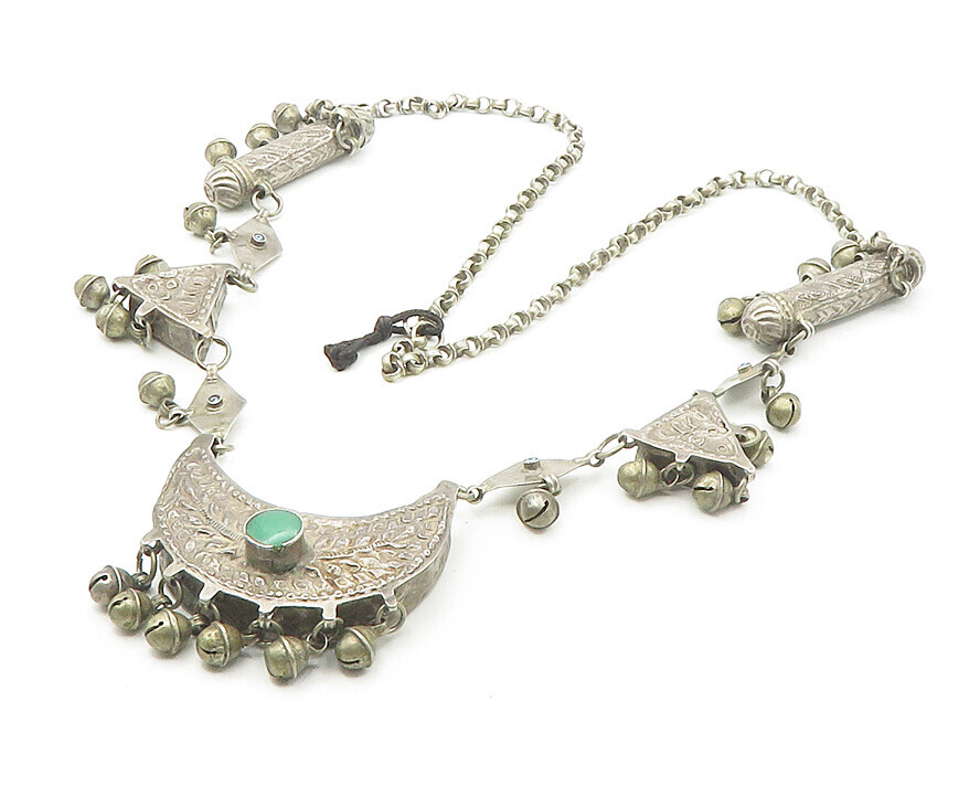 925 Silver Vintage Antique Heavy Turquoise Chiming Chain Necklace NE2878