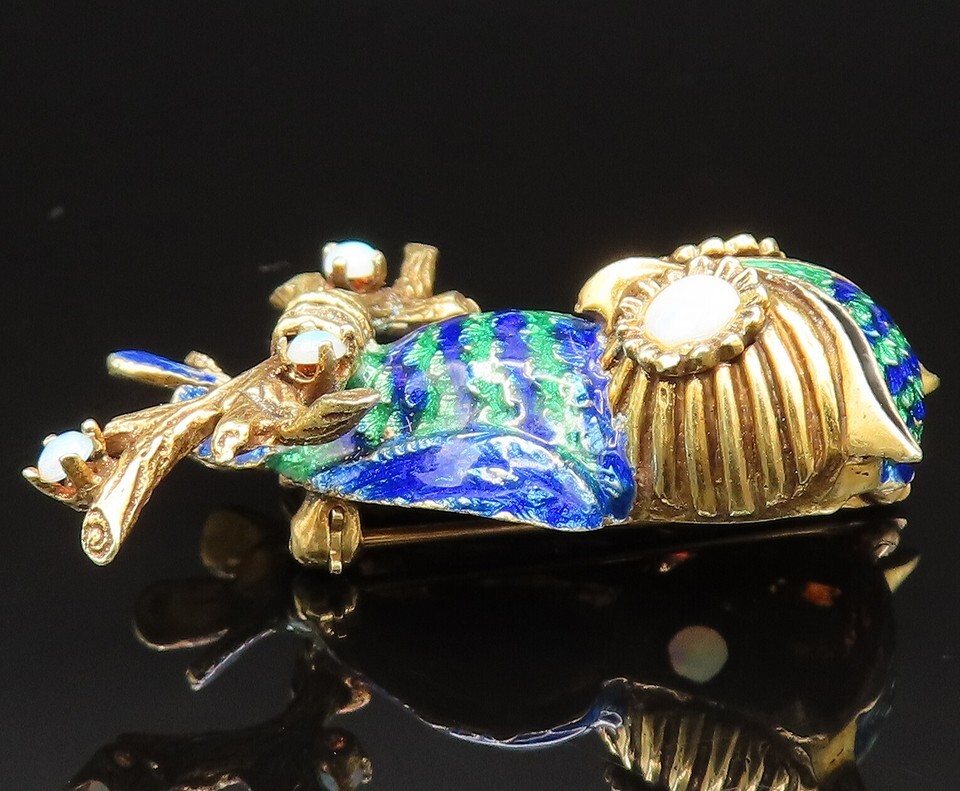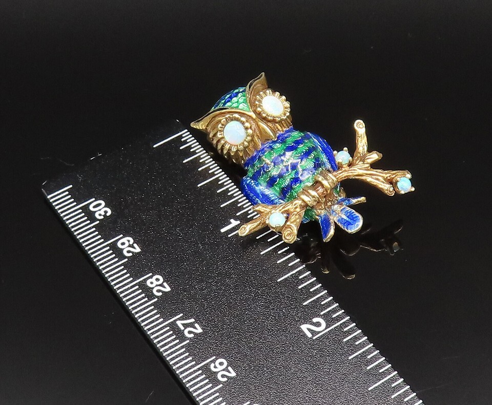 Authenticity Guarantee 14K GOLD Vintage Sculpted Enamel Owl With Fire Opal ...