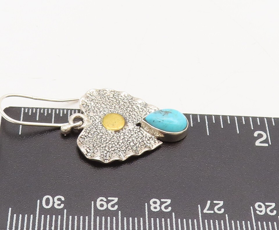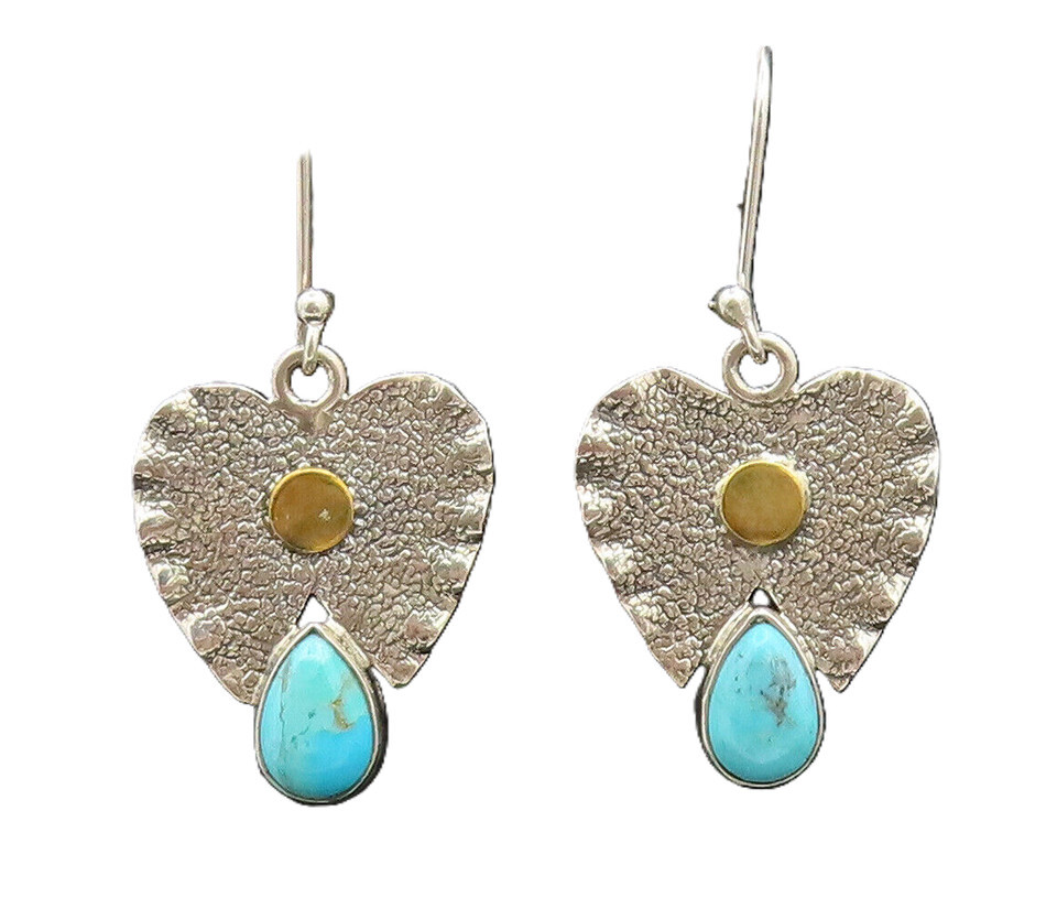 925 Silver Vintage Hammered Crush Cutout Heart Turquoise Earrings EG12528