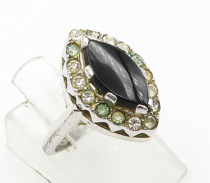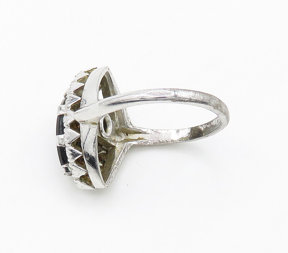 CLARK & COOMBS 925 Silver Vintage Black Onyx & Topaz Band Ring Sz 6 RG16113