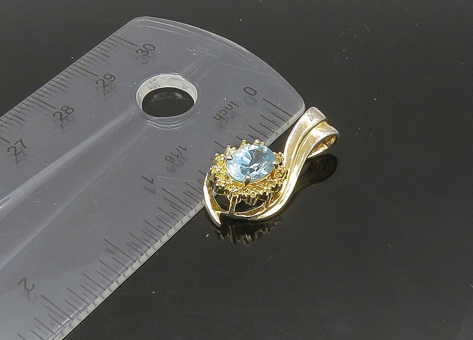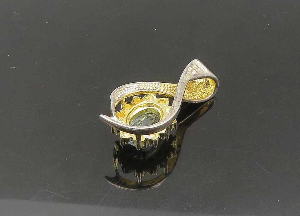 925 Sterling Silver Vintage Shiny Blue Topaz Floral Motif Pendant PT17768