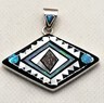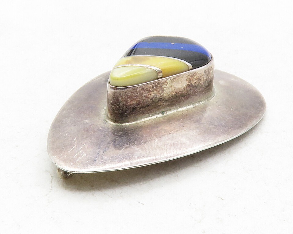 ZUNI 925 Silver Vintage Lapis Lazuli Onyx &Mother Of Pearl Pendant PT10208