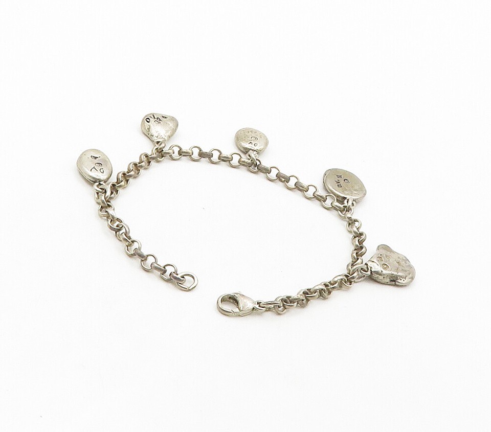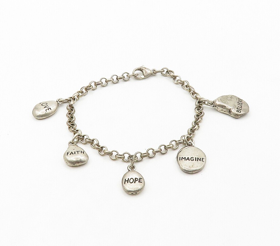 925 Sterling Silver Vintage Inspirational Word Charms Chain Bracelet BT6252