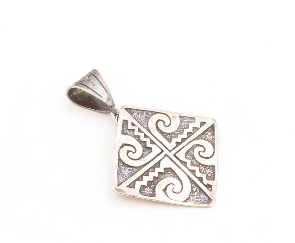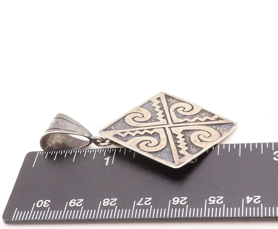 925 Sterling Silver Vintage Pendant NAVAJO Dark Tone Design Carved PT23839