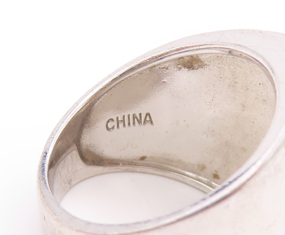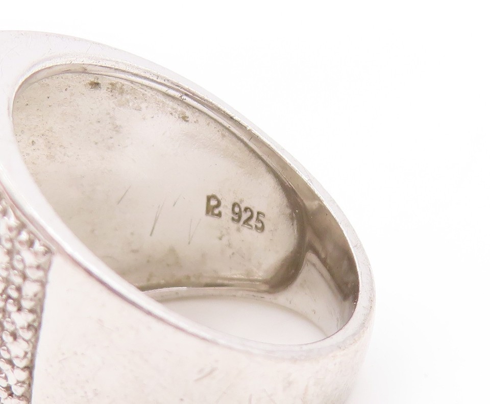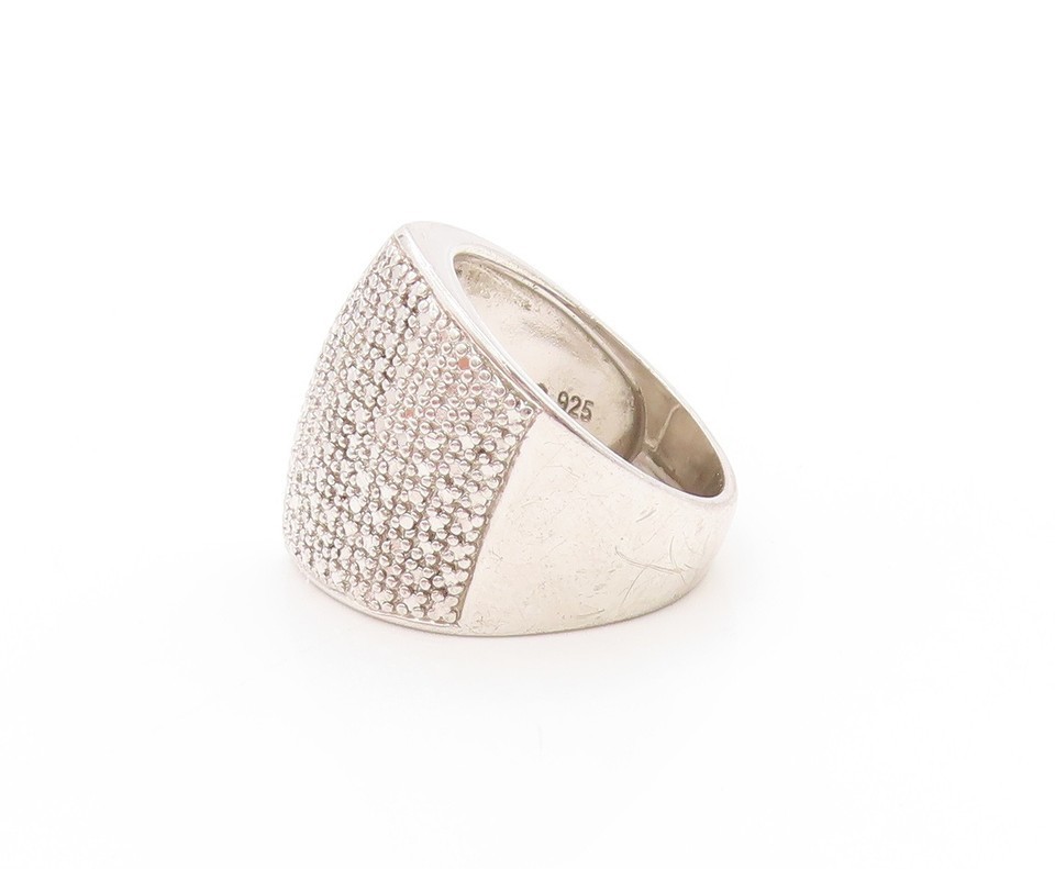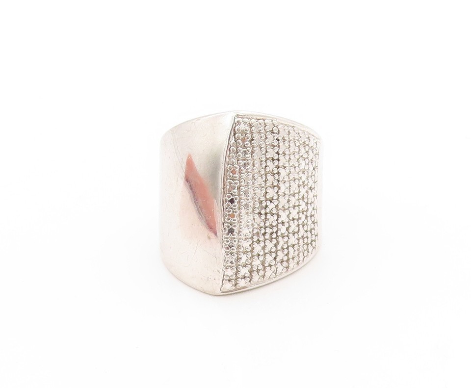 925 Sterling Silver Vintage Ring Sparkling Geometric Signet Band Sz 7 RG33677