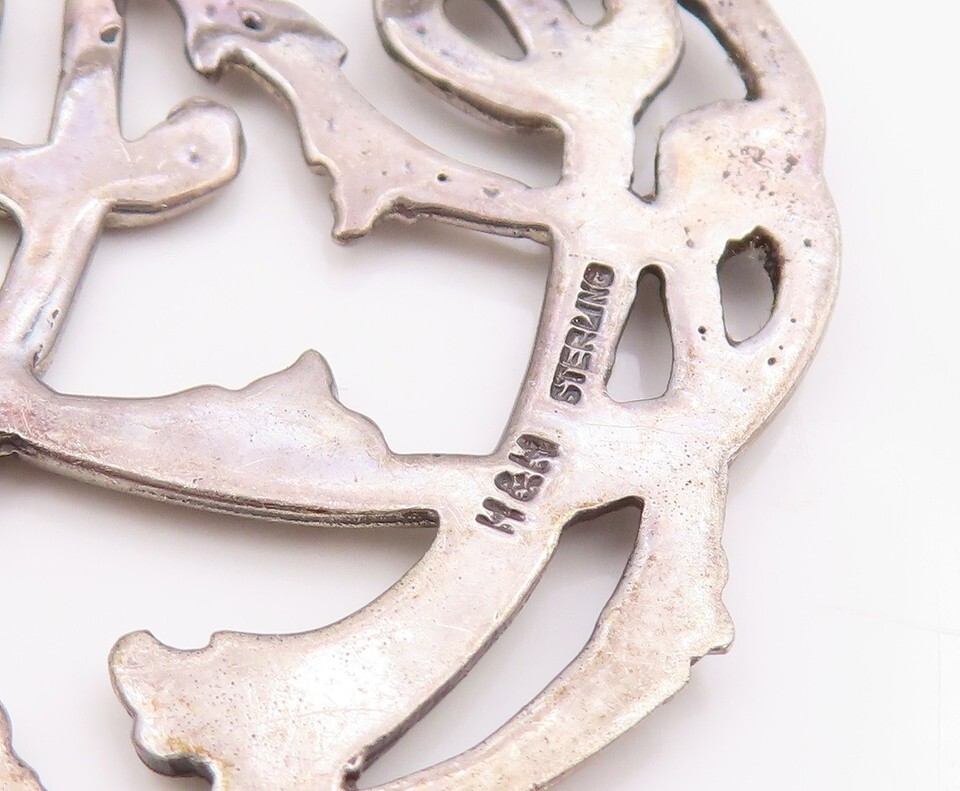 925 Sterling Silver Vintage Brooch HAND & HAMMER Celtic Knotwork Pin BP12129
