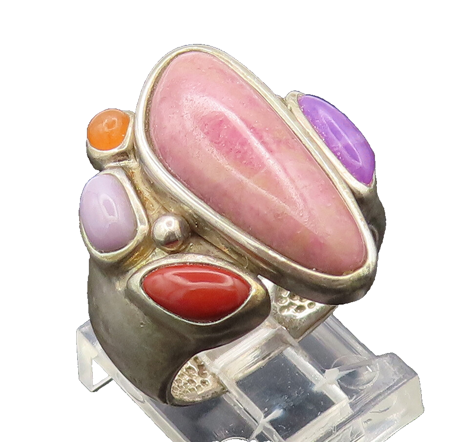 WHITNEY KELLY 925 Sterling Silver Vintage Multi Gemstone Ring Sz 7.5 RG27180