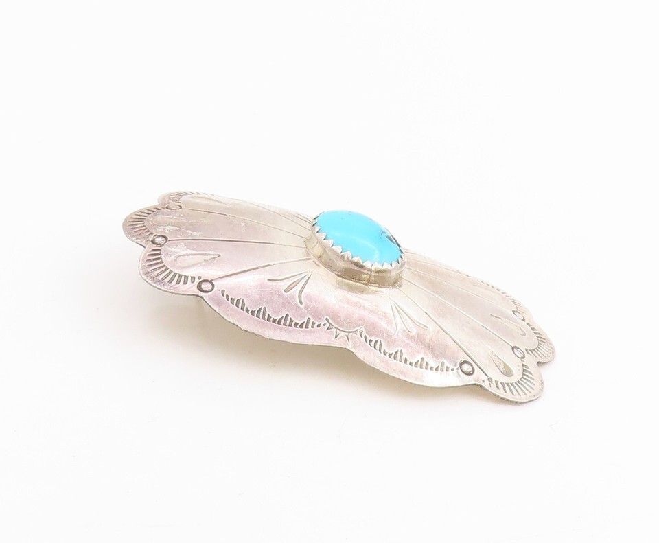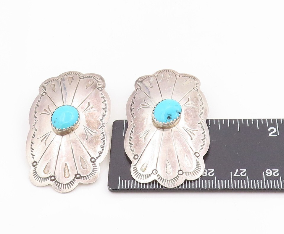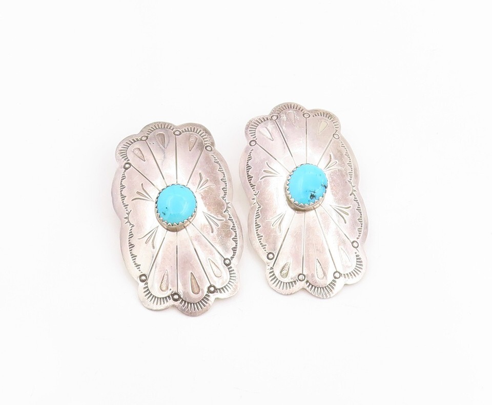 925 Sterling Silver Vintage Earrings NAVAJO Turquoise Etched Concho Stud EG13725