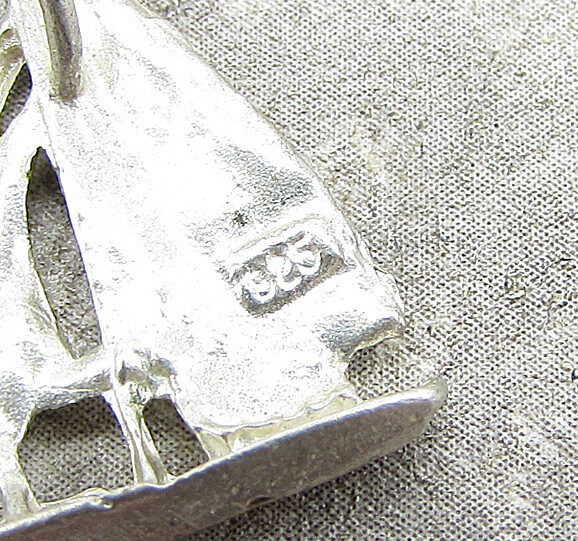 925 Sterling Silver Vintage Etching Detail Sailing Ship Pendant PT1340