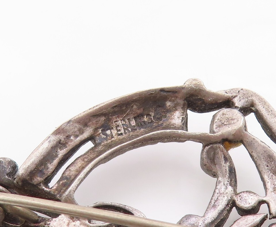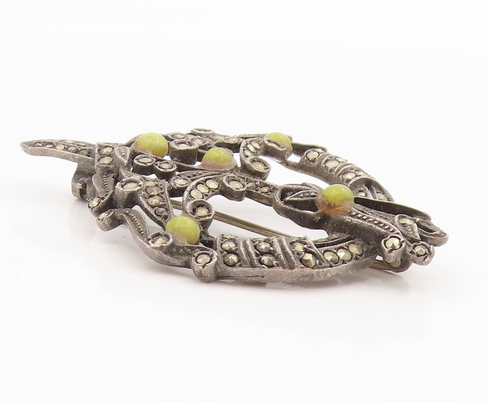 925 Sterling Silver Vintage Brooch Jade & Marcasite Celtic Knotwork Pin BP12146