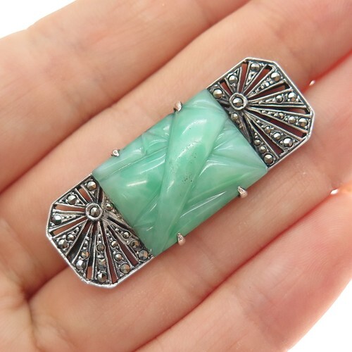 925 Sterling Silver Vintage Brooch Jade & and 50 similar items
