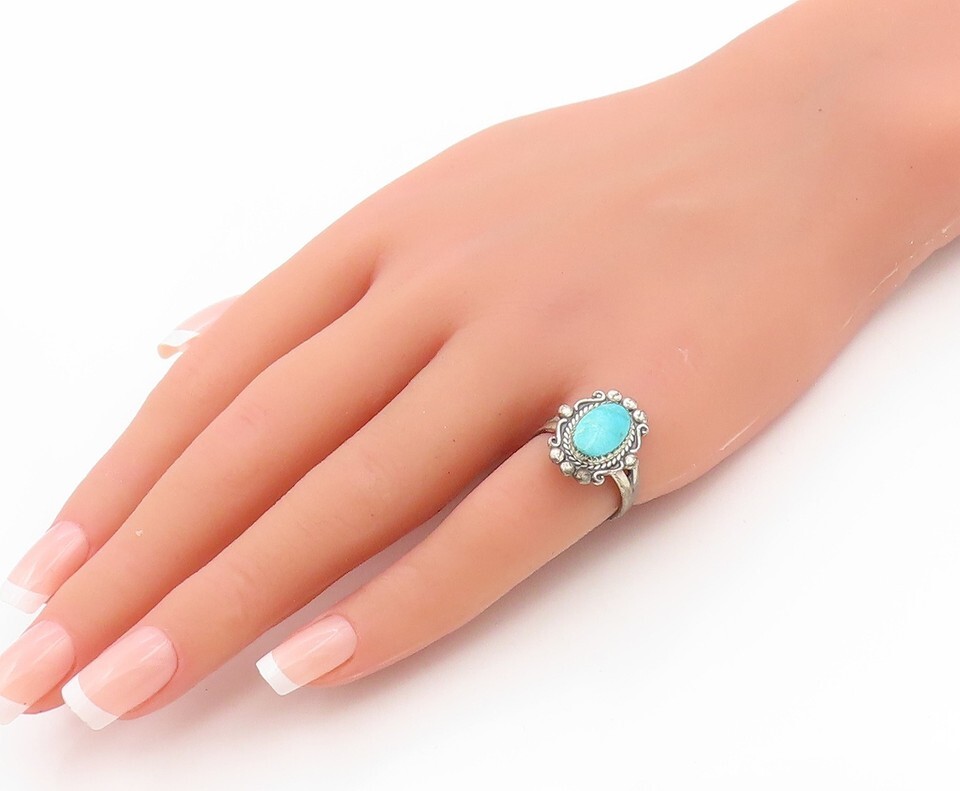 925 Sterling Silver Vintage Ring POST BELL Cabochon Turquoise Band Sz 6 RG34719