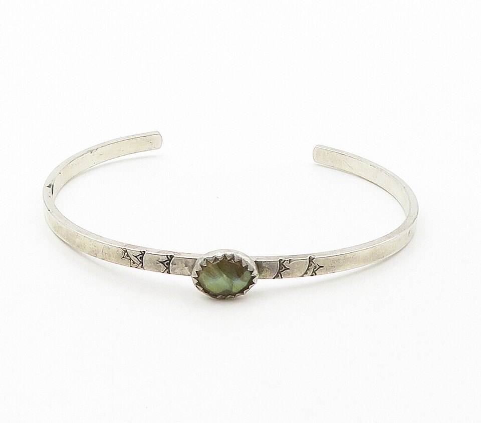 S. COOPER 925 Sterling Silver Vintage Faceted Labradorite Cuff Bracelet BT6348