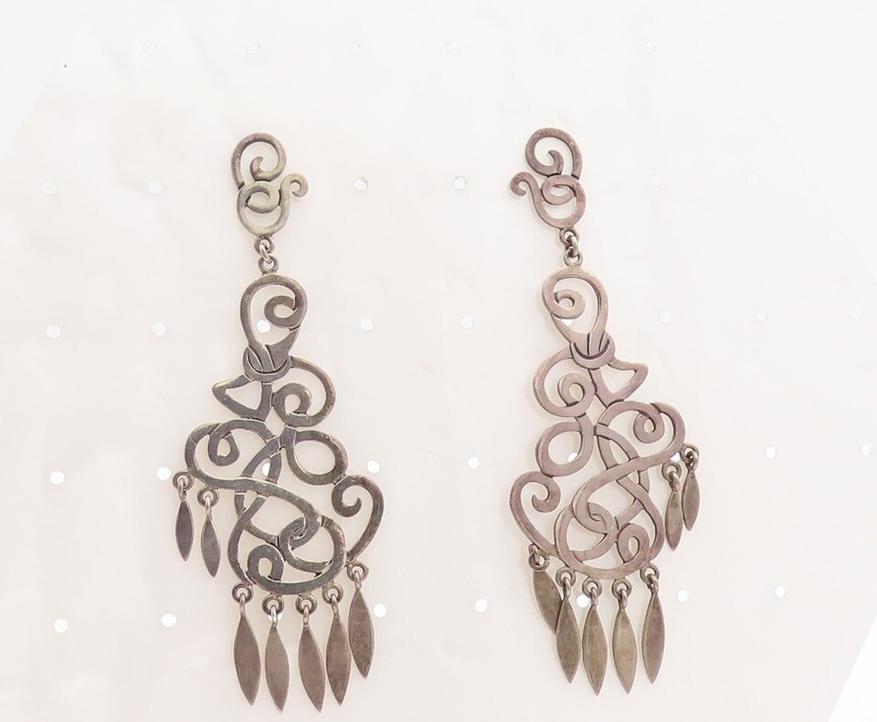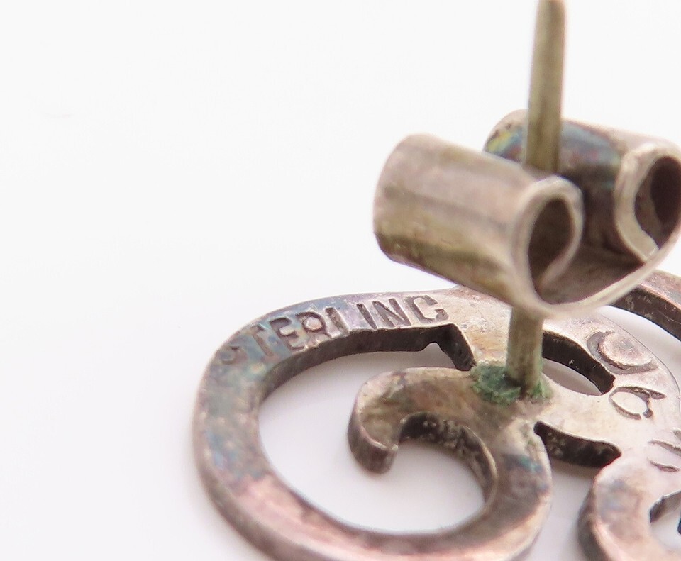 925 Sterling Silver Vintage Earrings TAXCO Large Designer Solid Cutout EG13233