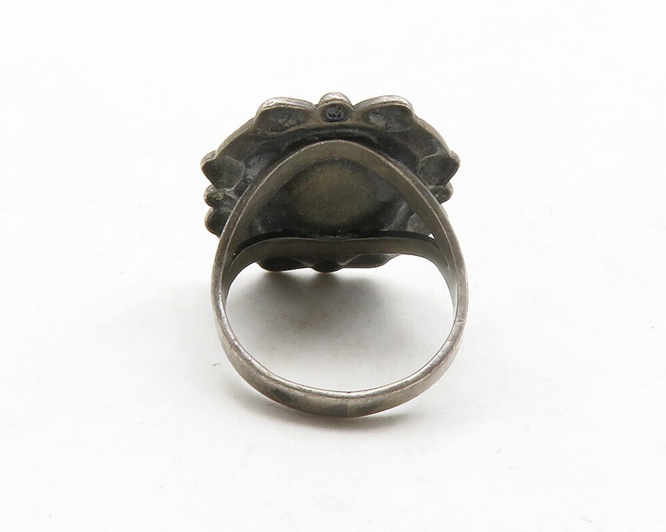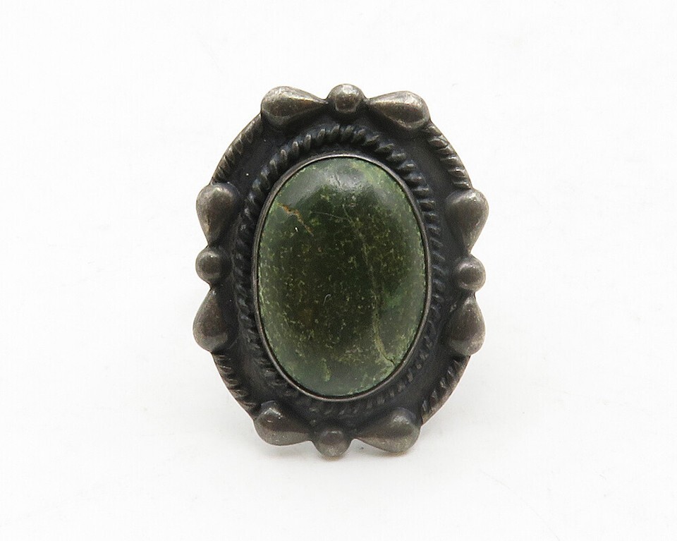 NAVAJO 925 Sterling Silver Vintage Green Jasper Cocktail Ring Sz 5.5 RG13159