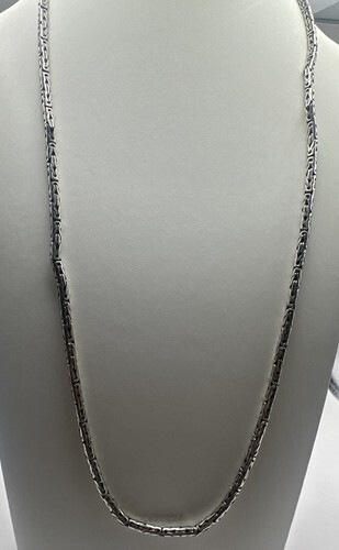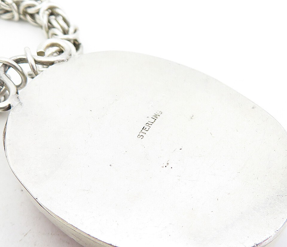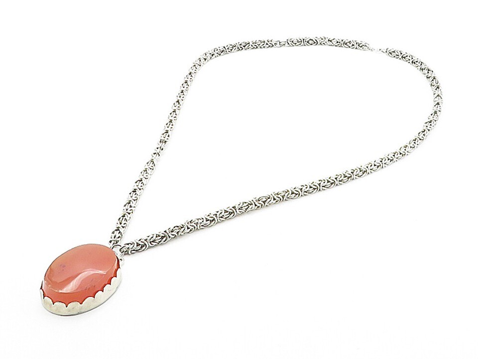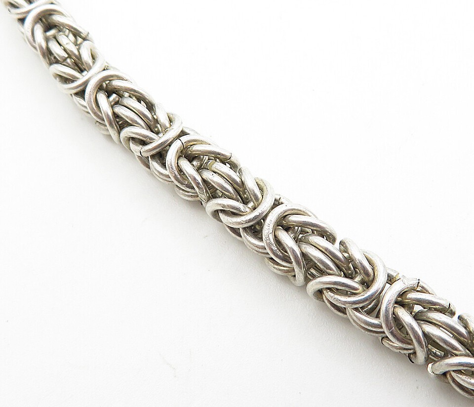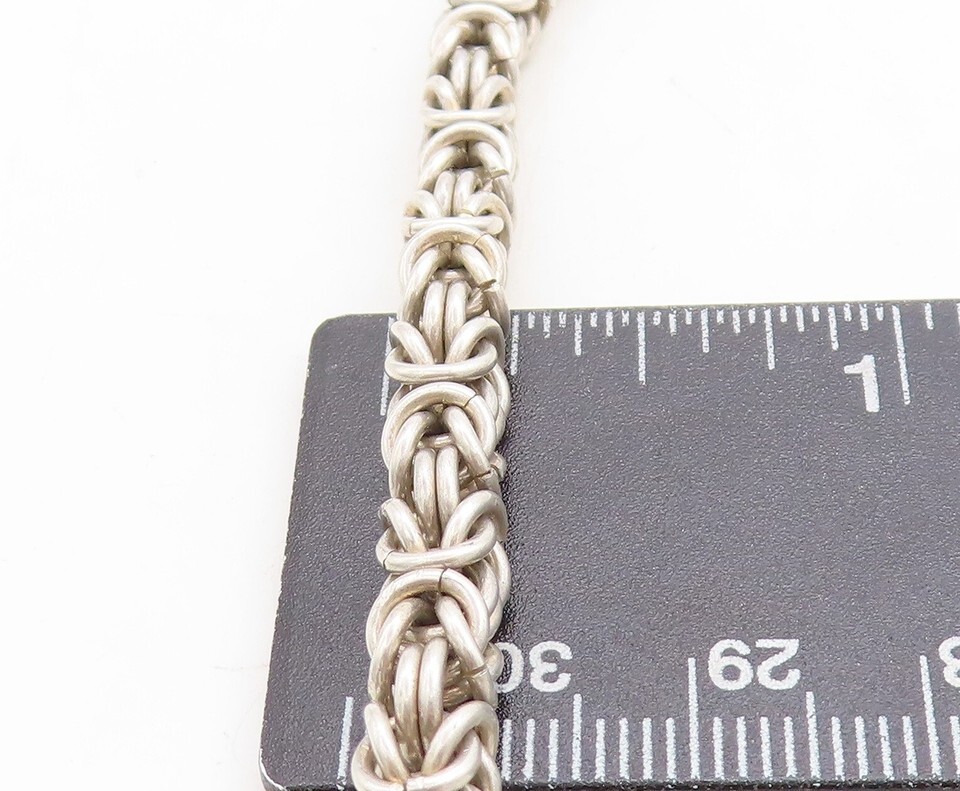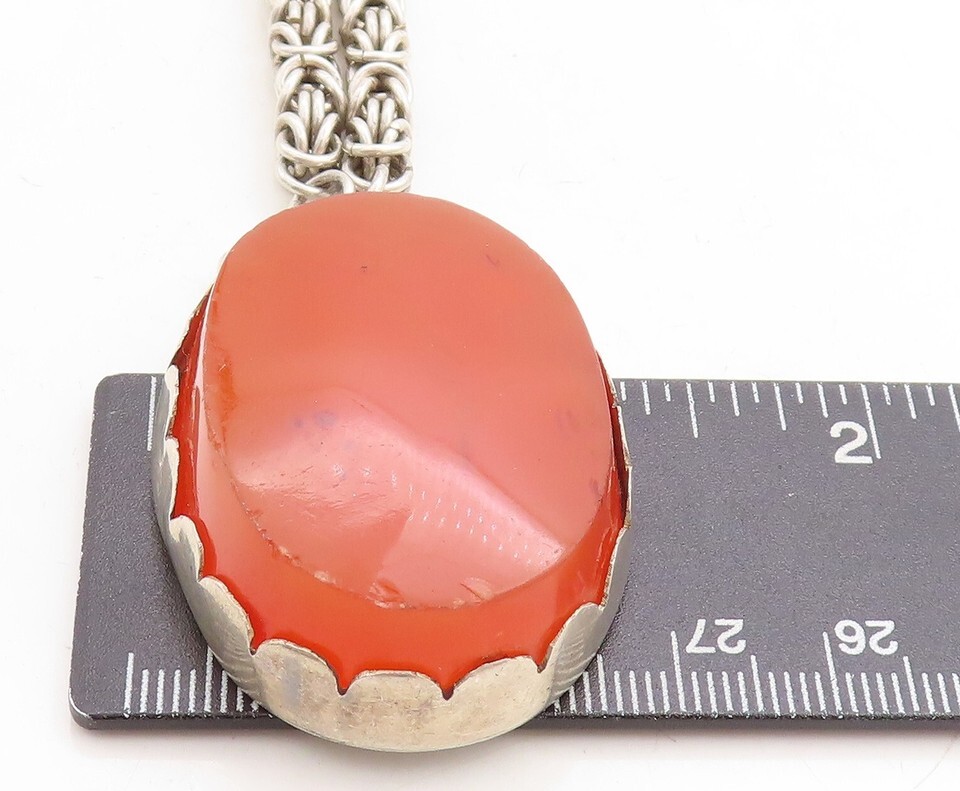 925 Sterling Silver Vintage Carnelian Byzantine Link Chain Necklace NE1461