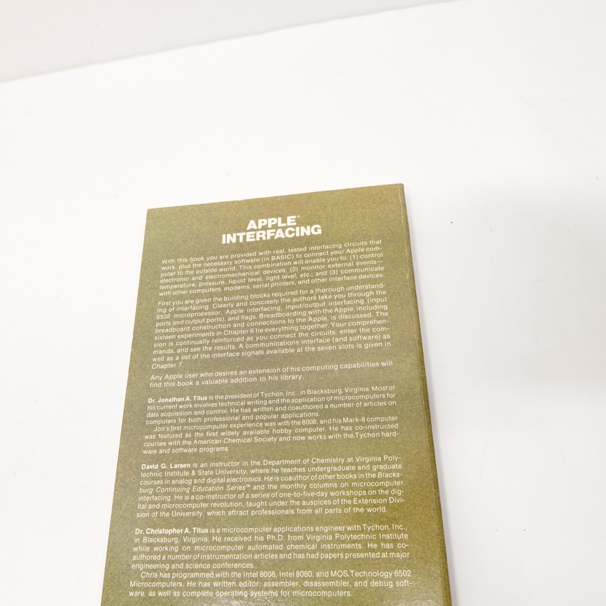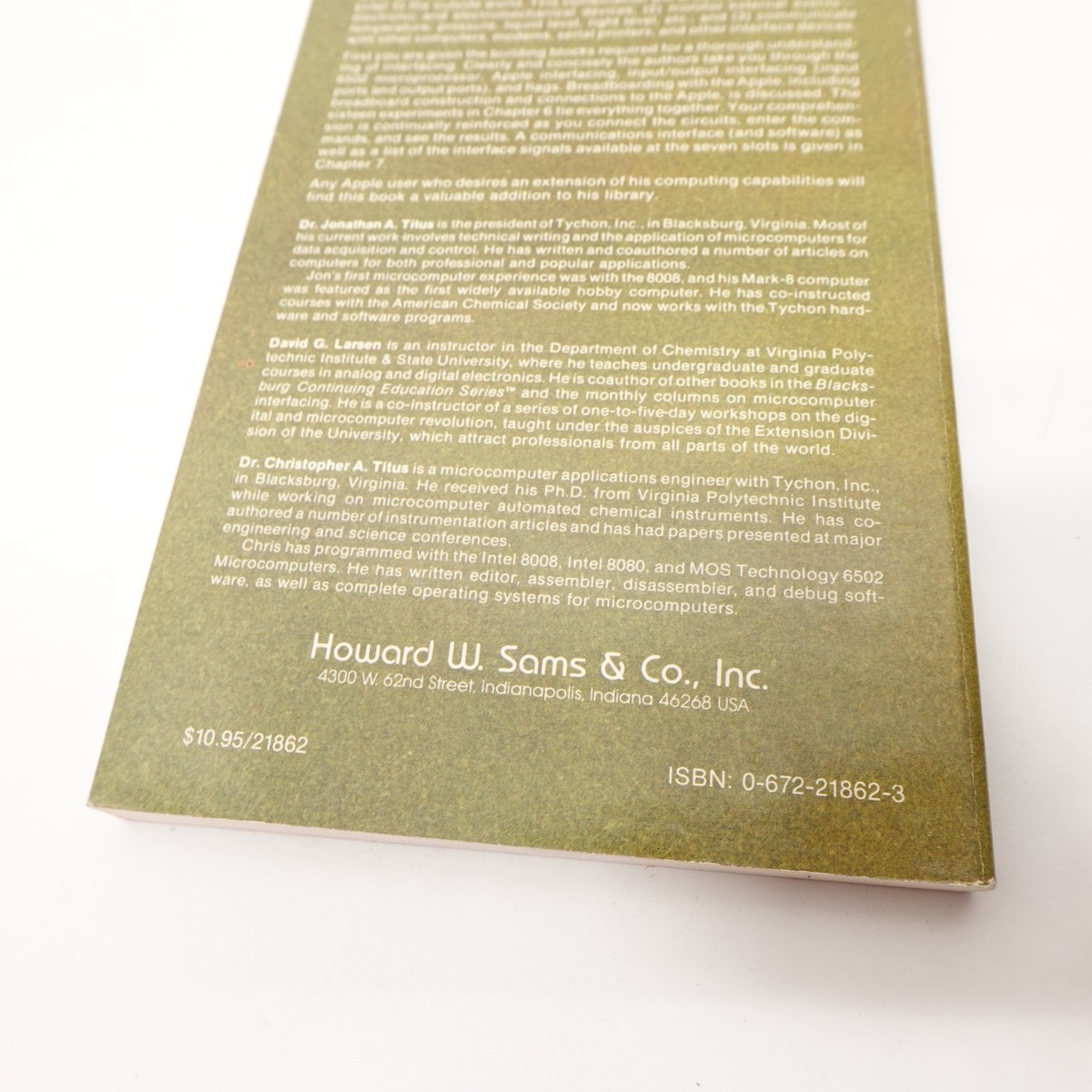 Vintage Apple Interfacing paperback reference book by Jonathan S. Titus, David G. Larsen Christopher A. Titus. Published by Howard W. Sams Co., Inc. as part of the Blacksburg Continuing Education Series.