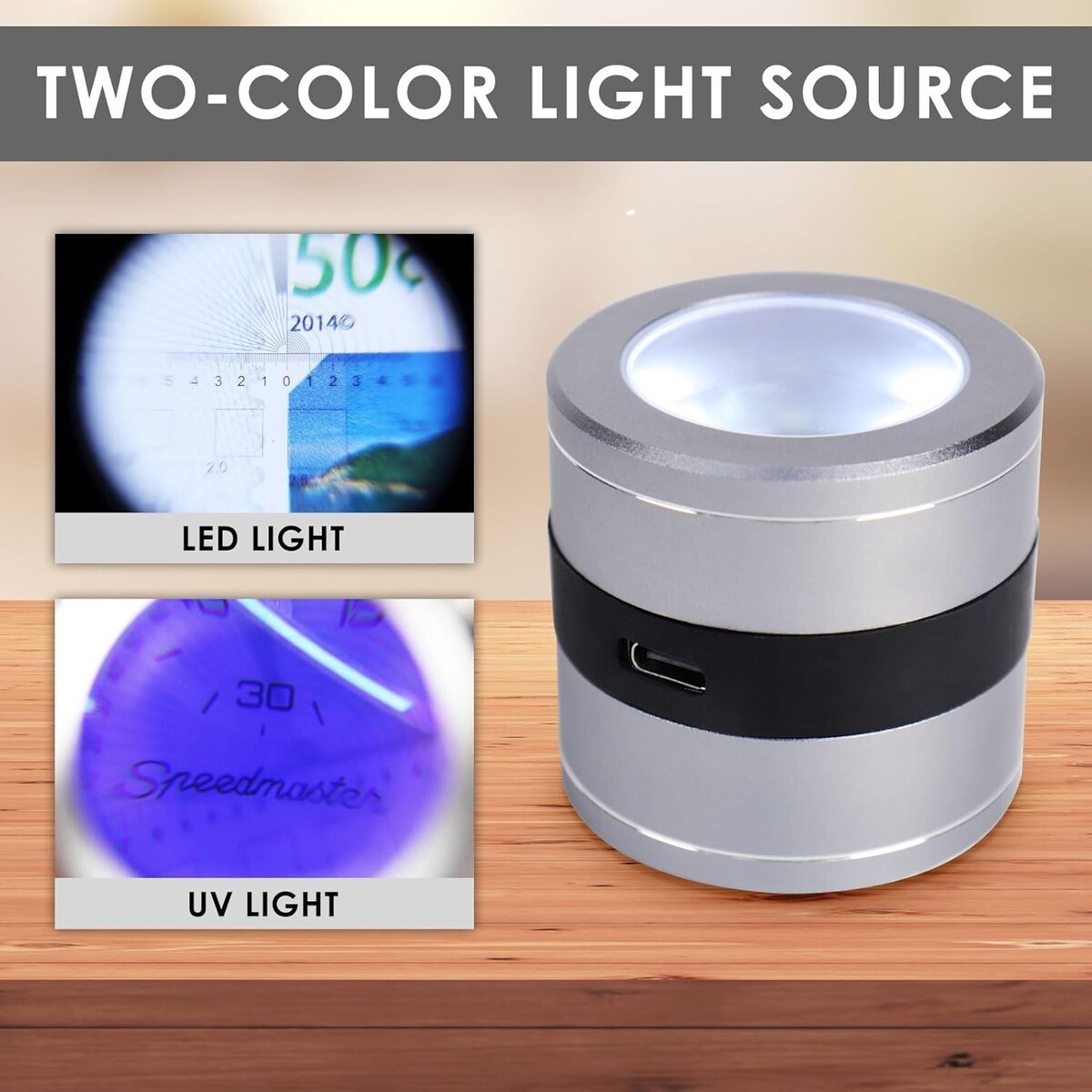 DANOPLUS Loupe is equipped with both LED and UV lights for enhanced visibility.
