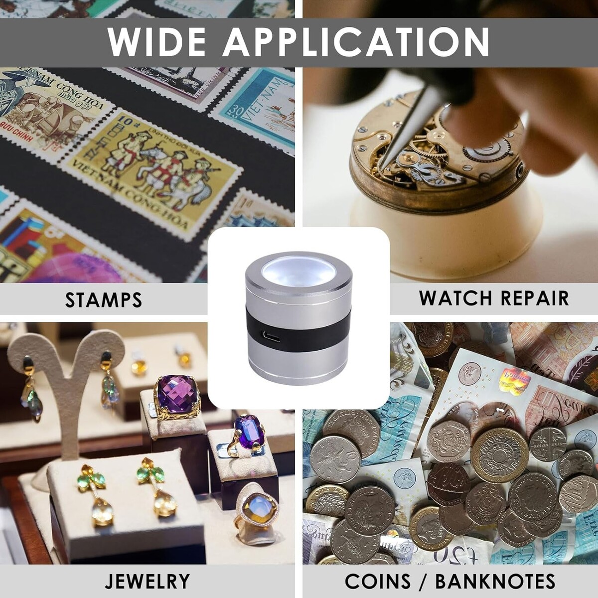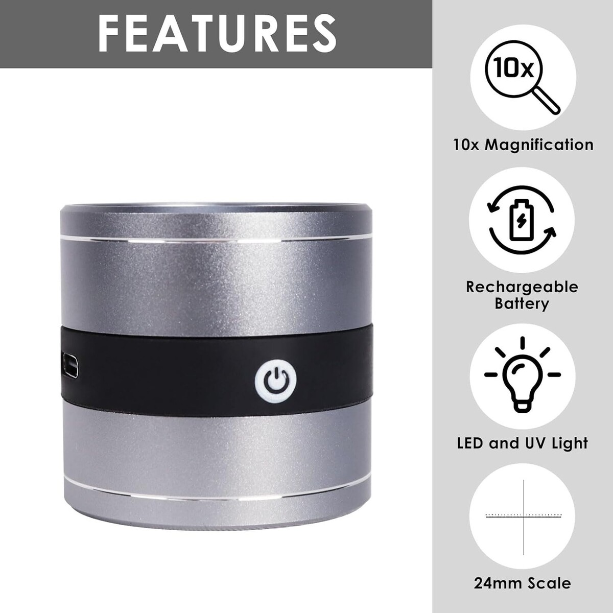 10X Jewelers Loupe Rechargeable, Magnifier with LED and UV Light, Jewelry Loop M
