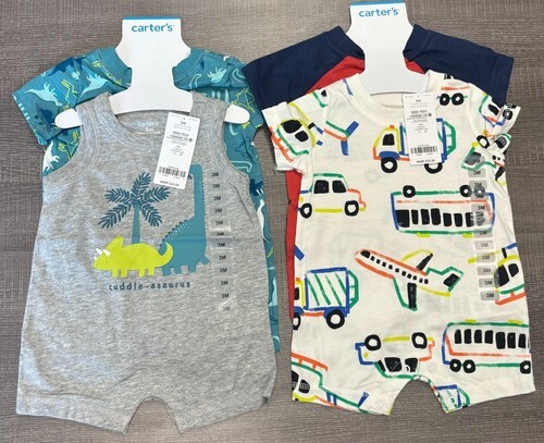 Baby Boy Clothes Lot 6pc 12M Summer – Shorts, Dinosaur Tee & Red Overalls