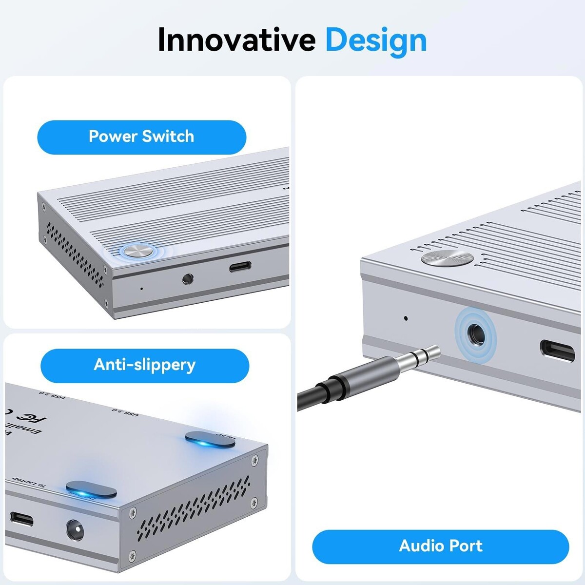 - Power button to control dock power